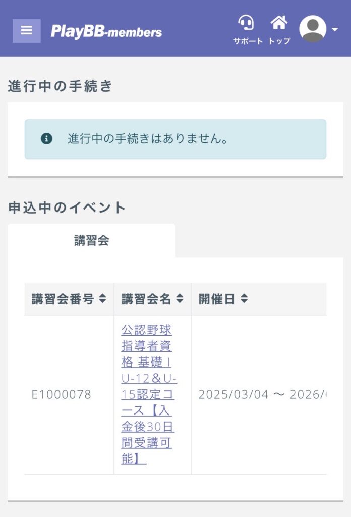 - 申し込んだ講習会が表示されているか